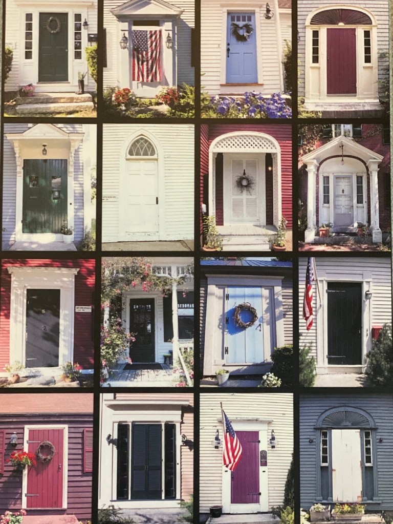 For Christmas one year, Mary Lee gave me a wooden wall hanging called “Doors of Yarmouth,” to remind me of the Maine town in which I lived for so many years. These are doors to old houses that have had careful tending (not to mention extensive and expensive remodeling). The doors come in a variety of colors. Most feature types of cross—sometimes called Christian—paneling. Three are plain wood with long hinges and latches. There are a couple of double doors and one shutter door. Some doors have glass windows, others are framed by small windows, shutters, cornices, lattice work, or flower vines. There’s a gothic arch over one door, a wooden fan over another, and several Greek canopies held up by pillars. All in all, they reveal how Yarmouth has changed from the working-class community I grew up in to the suburbia by the sea it is today.